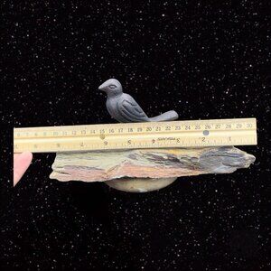 Primitive Style Sculpture Cast Iron Bird On Stone Base Carved Marble Bottom VTG. Measurements 5"Tall by 8"Wide