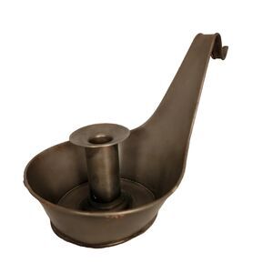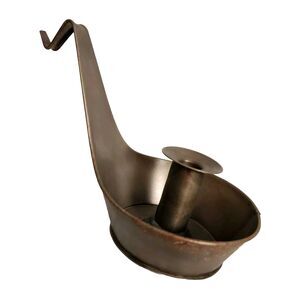 Primitive Tin Candle Bowl Pip Berry Holder Sconce 7.5" Ex Long Handle w Hanger