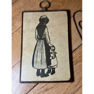 Rustic charm emanates from this delightful set of primitive wall art. A pair of framed silhouette prints, each depicting an Amish figure in traditional garb, offer a glimpse into a simpler way of life. A whimsical heart shaped whisk adds an unexpected touch. These pieces would enhance the atmosphere of a country kitchen, add character to a cozy dining room, or serve as conversation starters in a rustic-themed living space.