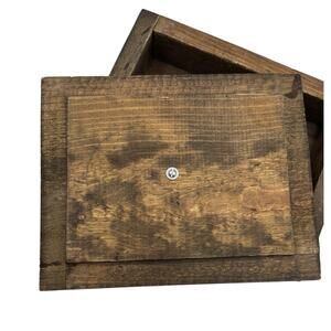 Primitive Wooden Box with Lid Handmade 9" x 7" Rustic Basic Weathered Wood Vtg