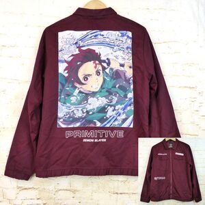 Primitive X Demon Slayer Jacket Men M Red Anime Tanjiro Zip Utility Street Skate