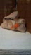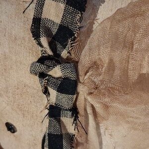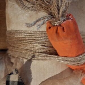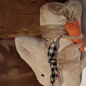 A handmade primitive rabbit. Painted white and lightly grunged. cheesecloth added around neck. Faux prim carrot tied around bunny. Approx. 9 x 12. See pics.