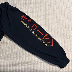 Primitive Skate x Kikkoman collaboration long-sleeve tee featuring bold Japanese lettering, soy sauce bottle artwork, and full front/back sleeve graphics. Soft cotton, comfortable fit, and collectible streetwear collab.