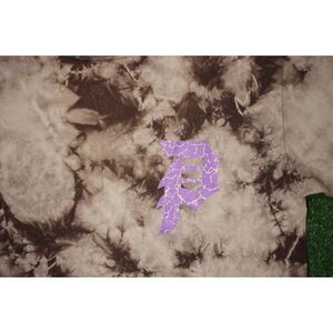 Color: Brown tie-dye with purple and white graphics