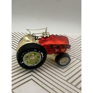 Primitives By Kathy Red Tractor Glass ORNAMENT NEW Christmas Holiday