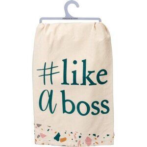 A chic cotton dish towel featuring a "# like a boss" sentiment in a blush, emerald, and metallic palette. Complements well with coordinating pieces in collection for an inspiring display. Machine-washable.