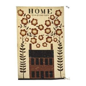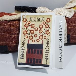 New Primitives by Kathy "Home Love Grown here" linen cotton hand towel. Folk Art Dish Towel. Art by Dan DiPaolo