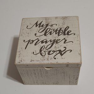 Write down your prayers and store them inside this wooden hinged box featuring hand lettered "My Little Prayer Box" sentiment.