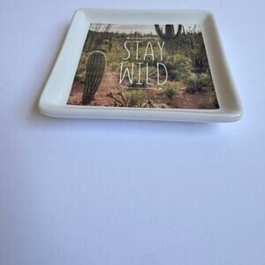 Primitives by Kathy Small Trinket Tray Stay Wild Cactus White Square Boho Gift