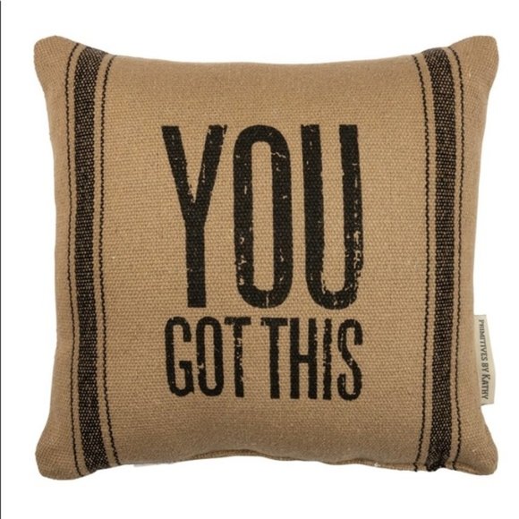 Tan pillow with bold black text. Reads 'YOU GOT THIS'. Perfect for encouragement. Ask any questions, no returns as I am clearing my closets out. This is a small pillow