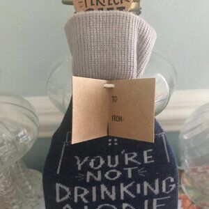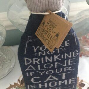 Primitives by Kathy "You're Not Drinking Alone If Your Cat Is Home" Bottle Sock NEW with tag