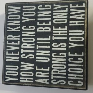 Primitives by Kathy sign Strong wood size 6x6 6" square black white lettering art decor Strong saying wood material