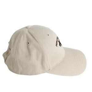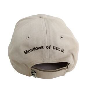 Features: Front embroidered "Primland Resort" with "Meadows of Dan, VA" on the back, 100% cotton, beige khaki, 6 panel, adjustable hook/loop fastener strap, slightly curved visor, made by Richardson style 203.