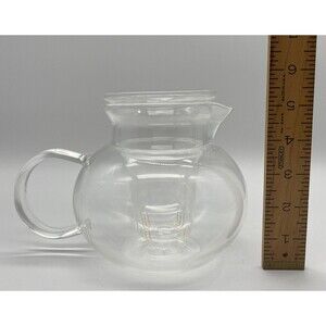 Tea pot in very good condition. Has no lid but still usable. No chips or cracks in glass and no type of discoloration to glass