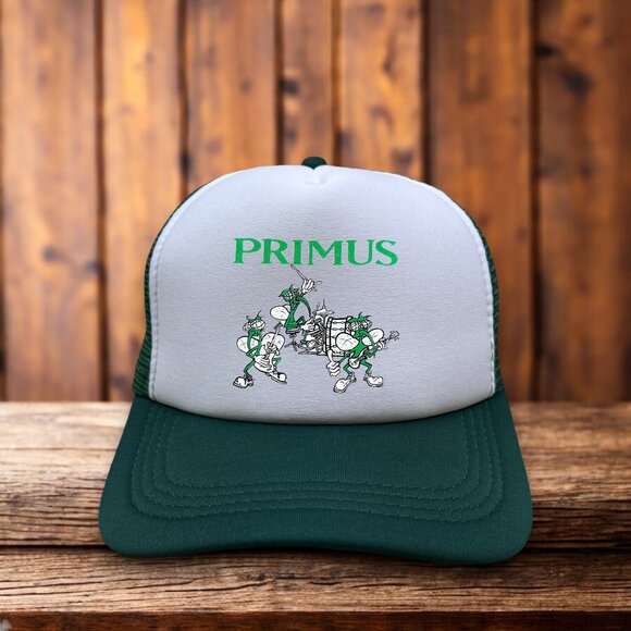 Primus Mens Trucker Hat Green Snapback 90s Prog Metal Nostalgic Baseball Cap