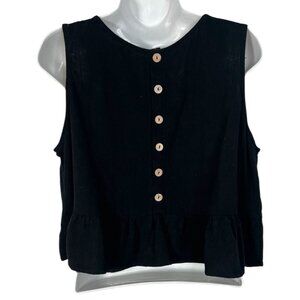Prinbara Cropped Ruffle Tank Top Sleeveless Linen Blend Black US Med