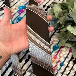 Prince Bellini Vintage Italian Styled Brown Tan Red Rust Striped Polyester Tie