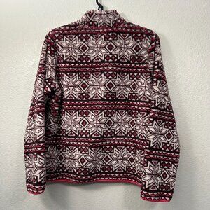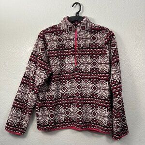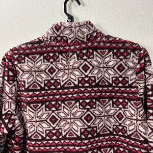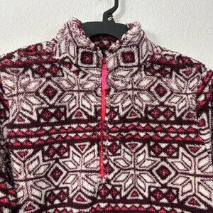 Prince & Fox Nordic Quarter Zip Pullover Sweater Fuzzy Icelandic Fairisle Size XL in burgundy & white.