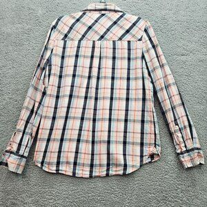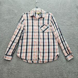 Prince & Fox Womens Plaid Button-Up Shirt Large Long Sleeve Cotton Pink Navy