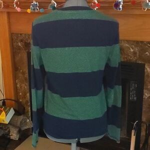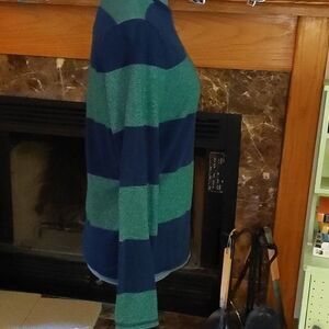 blue and green striped shirt