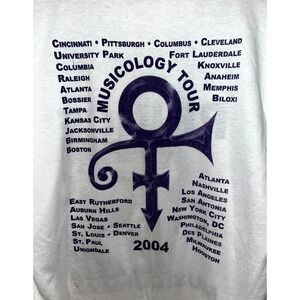 Authentic 2004 Prince Musicology Tour T-Shirt printed on an All Sport Max Weight Shirt. This vintage original captures the psychedelic funk and R&B spirit of Prince’s legendary Musicology era.