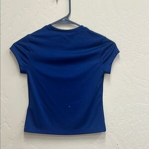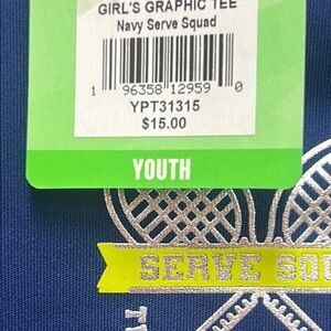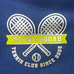 Navy tee with tennis racket design. Ideal for active wear. Let’s make a deal.