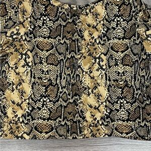 Stylish Snakeskin Print Short-Sleeve crop Top. This trendy short-sleeve top features a realistic snakeskin print in shades of brown, black, and tan. It has a relaxed, boxy fit and a classic crew neck. Perfect for adding an edgy and fashionable touch to any outfit!