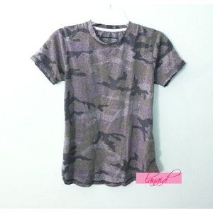 RARE. Prince Peter "Silver-Stripes Camouflage Short-Sleeve Distressed Tee" in Burnout Camo, size S. Sold out everywhere! Lulus description: "Give your look a cool-girl upgrade with the Prince Peter Silver-Stripes Camouflage Short Sleeve Tee! Soft jersey knit, in a vintage-inspired burnout camo print, shapes this essential tee that features a rounded neckline and short sleeves with backstitched cuffs. Silver striped tabs down each side for a touch of unexpected glam. Relaxed-fit bodice."