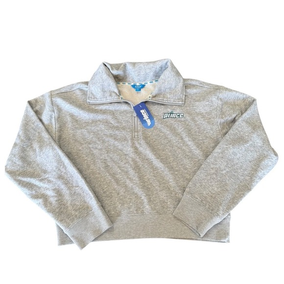 Prince Pickleball Women's Quarter Zip Cropped Pullover Sweater Grey