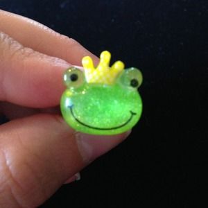 Handmade Crystal Iris Design Ring. Green and pink frogs. Adjustable. Bundling available.