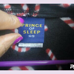 Prince of Sleep style 65729-10179 candy cane onesie christmas pj pajamas in black, red and white size kids 14/16.