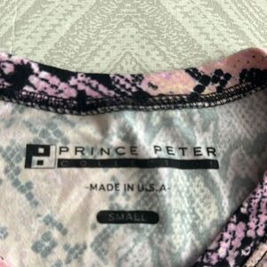 Prince Peter Collection Pink and Black Snake Print Short Sleeve Tee - Size S. Embrace bold style with this Prince Peter Collection tee, featuring a striking pink and black snake print. The short sleeve design offers a classic crew neck fit, perfect for casual outings or making a statement. Crafted with attention to detail, this tee combines comfort with a unique animal print flair. Pit to pit 18” and 19” shoulder to front hem. Gently worn.