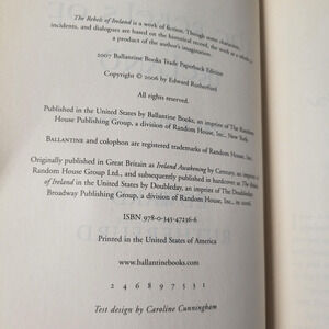 Both are soft cover trade paperback editions. The Princes of Ireland is the first Ballantine Books trade paperback edition (March 2005), ISBN 0-345-47235-7. The Rebels of Ireland is the Ballantine Books trade paperback edition (2007), ISBN 978-0-345-47236-6.