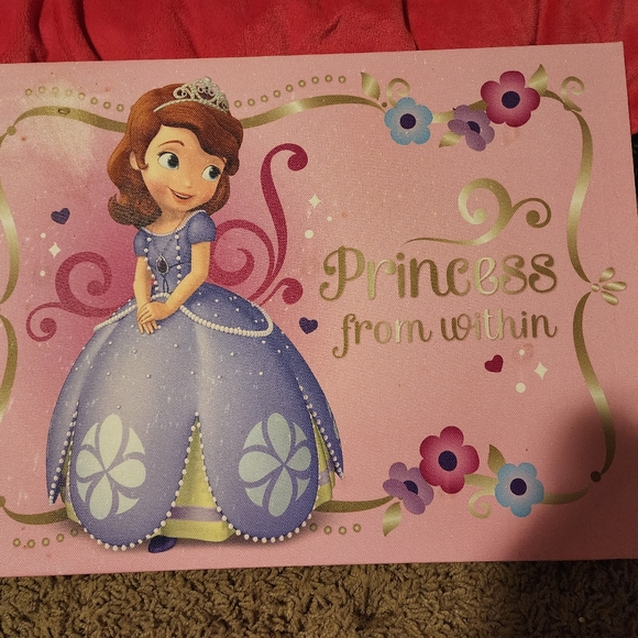Gently used Sofia the first hanging canvas board. Does have a light up switch. However, it does not work.