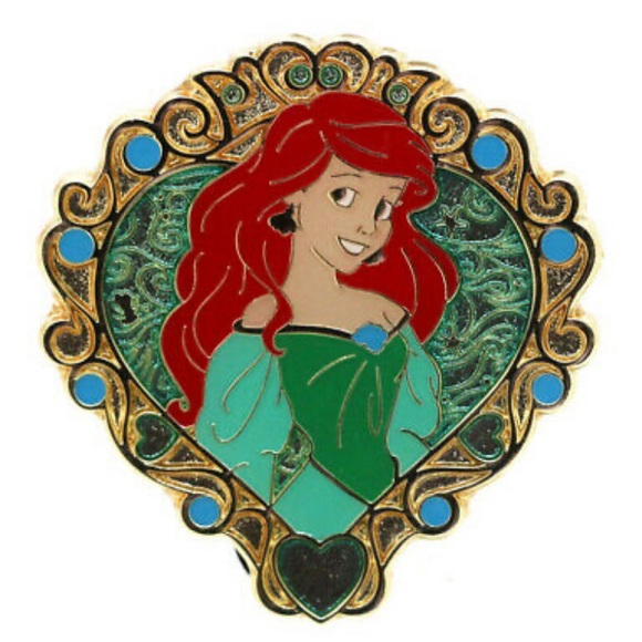 2013 Disney Princess Hearts Ariel Pin. Pin comes with a rubber Mickey Icon back. This pin features Ariel in a gold heart shaped frame with a crown at the top.