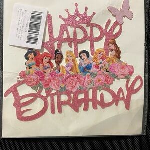 Add sparkle to your cake with this princess-themed topper. Features pink glitter accents.