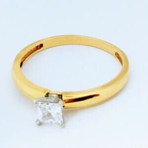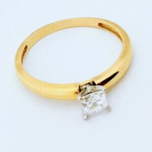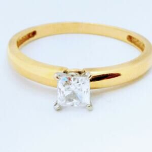 Princess Cut CZ Engagement Ring 14K Yellow & White Gold Two Tone Size 9