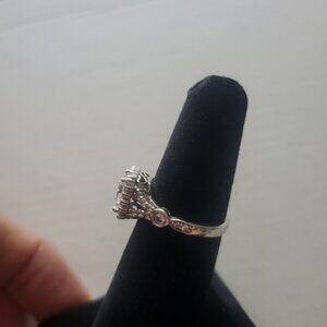 Silver tested as 925 stones are thought to CZ. very pretty ring