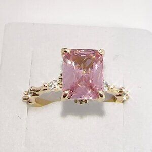 Princess Cut Pink CZ Ring Gold Plated Size 5
