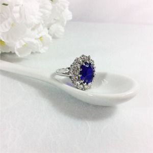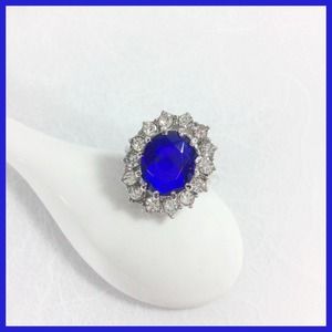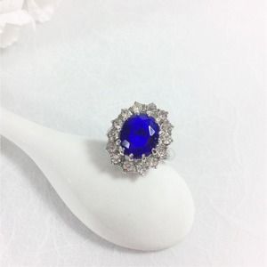 You'll feel like a royal princess in this stunning Sapphire and White Topaz styled cocktail ring set in a silver tone. Lab created gemstones.