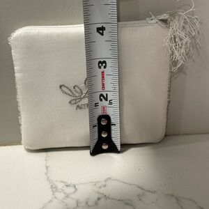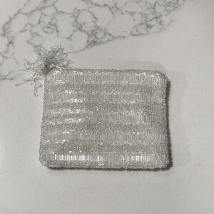 Really pretty and dainty coin pouch. I don’t even think I could put dirty coins in here!! No missing beads or pulls in excellent condition! Measurements shown in photos. Zip closer.