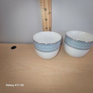 Elegant Princess Diana Designer Dinnerware Collection by The Franklin Mint. Blue, silver, white set of two cups, perfect for adding a regal touch to any dining experience.