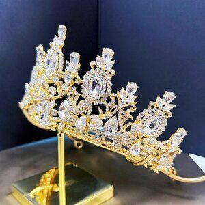 Color: Clear Crystal, rhinestones and Gold-plated crown.