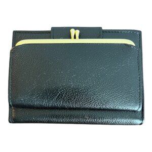 Elegant black leather bifold wallet featuring credit card slots, a photo holder, and a coin purse. Perfect for everyday use, offering both style and functionality. 5.75" X 4", NEW Old Stock, Box has little wear.
