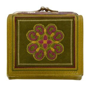 Vintage Princess Gardner Wallet Coin French Purse Gold Leather Embroidered Flower 1950s