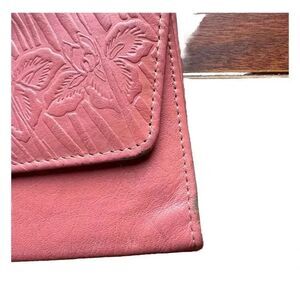 This vintage Princess Garner pink leather wallet is a must-have for any fashion-forward woman. The wallet features a kiss-lock closure, as well as a checkbook and coin pocket for added convenience. The beautiful pink check pattern adds a touch of elegance to the wallet, making it the perfect accessory for any occasion.