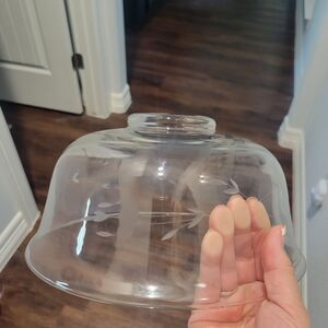 The Princess Heritage Collection Crystal Serving Bowl is a stunning piece of Victorian-style glassware hand-blown in the USA in 1991. This elegant bowl features intricate floral etchings and a glossy finish, making it a perfect centerpiece for serving salads, fruits, or any other snacks. The Princess House brand is known for its high-quality glass pieces, and this vintage bowl is a beautiful addition to any collection of decorative cookware and serveware. The clear crystal material and intricate floral pattern add a touch of sophistication to any dining table or living space. Size is 10" round by 4.5" tall. No chips cracks or scratches