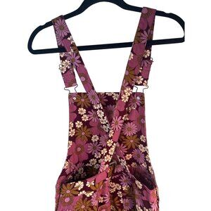 Floral overalls, pink overalls, cotton jumpsuit, gardening outfit, womens overalls, floral jumpsuit, casual wear, patterned overalls, bohemian style, colorful overalls, princess highway clothing, vintage-inspired overalls, adjustable strap overalls, casual cool, artistic, comfy, urban, relaxed, granola girl, festive, concert, cozy cabin, cozy, hippie, bohemian, unique, modern, stylish, statement piece