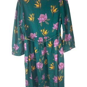 Princess Highway Size 6 Green Floral Dress With 3/4 Sleeves & Elastic Waist NWT