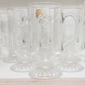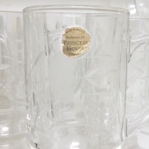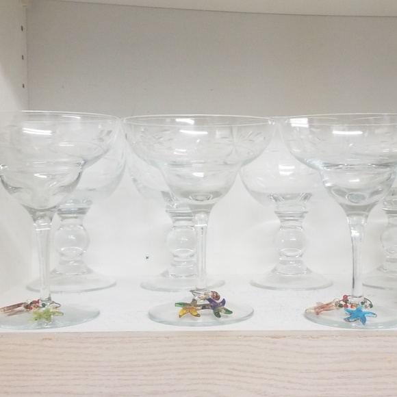 Crystal Princess House heres the list 3 petite Margarita glasses with 6 starfish charms. 4 grande Margarita glasses, 8 coffee cups with handles. Frosted detailing. Retails 10.99 +tax each. This package lot worth $150.00 - $200.00.